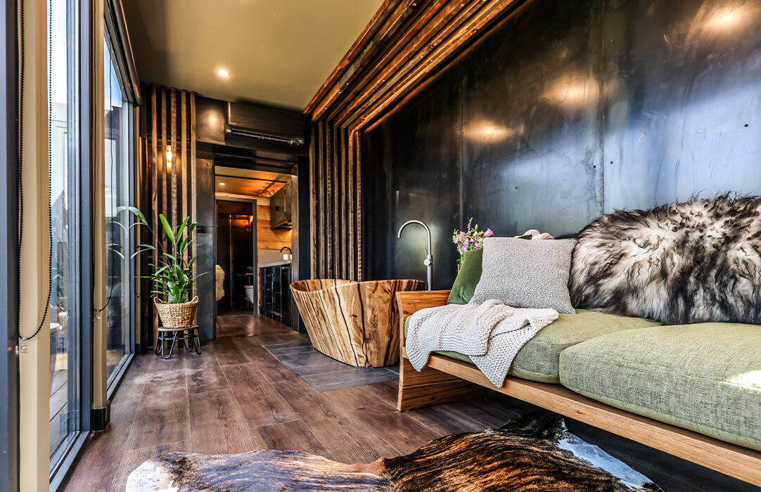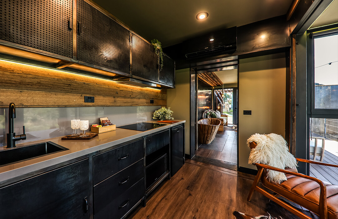 The only accommodation of its kind. From the world’s only camphor laurel bath with fibre optic lighting in the walls, to the exotic industrial pipe lighting, private cliffside deck, indoor and outdoor baths, moody design vibe and hellishly sexy private wellness precinct.