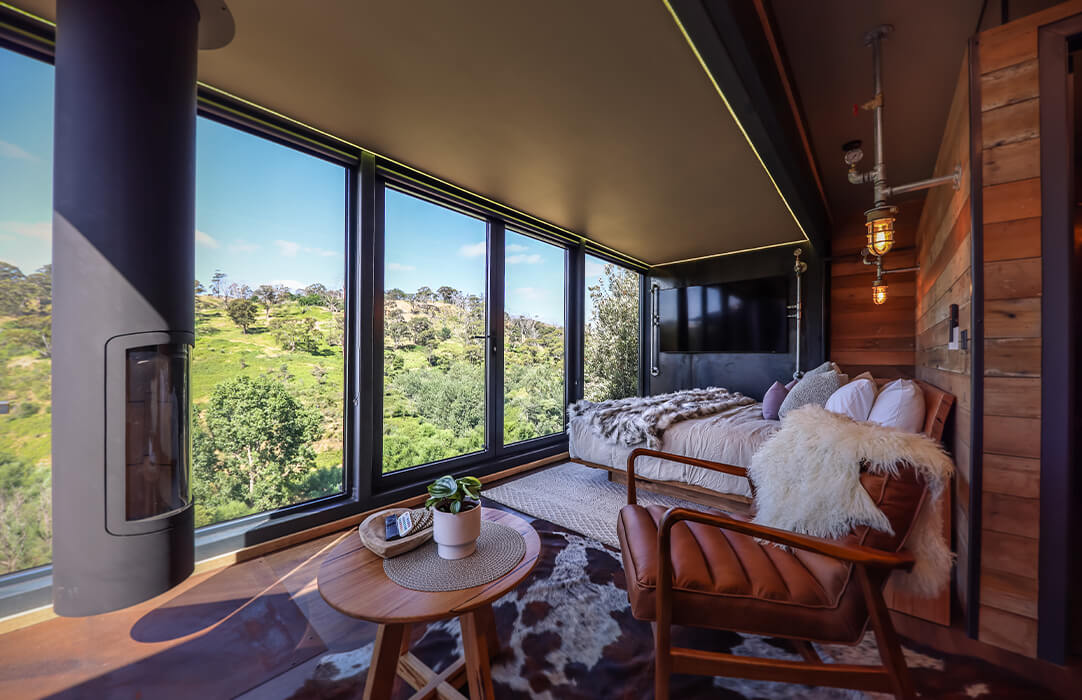 The thrill of staying somewhere truly unique is hard to beat. There’s something about this type of travel that gets under your skin and makes you long for more. More salvaged timber, more suspended fireplaces, more incredible architecture, more stunning views…more of everything! We’re immensely proud of this rare hideaway that cries out for whisky or gin in front of the gorgeous wood fireplace on a winter’s night. We’ve crafted a stunning escape genuinely unlike anything you’ve ever seen before.